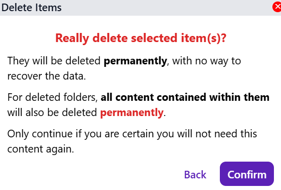 Delete the selected Files and Folders. Be careful -- this cannot be undone.