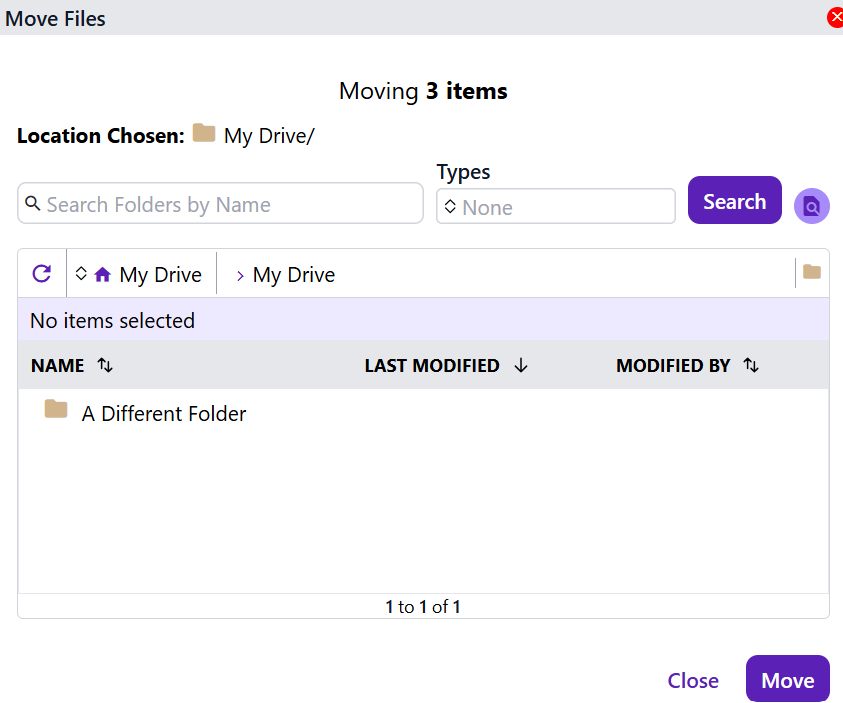 Files and folders may also be moved by clicking and dragging them onto another folder Folder you have WRITE access to.