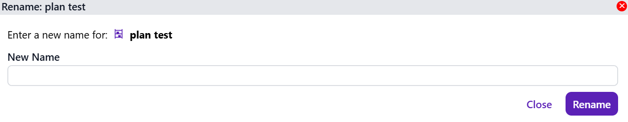 Opens a dialog to rename the selected File or Folder. The new name must not conflict with another File or Folder at the current location.