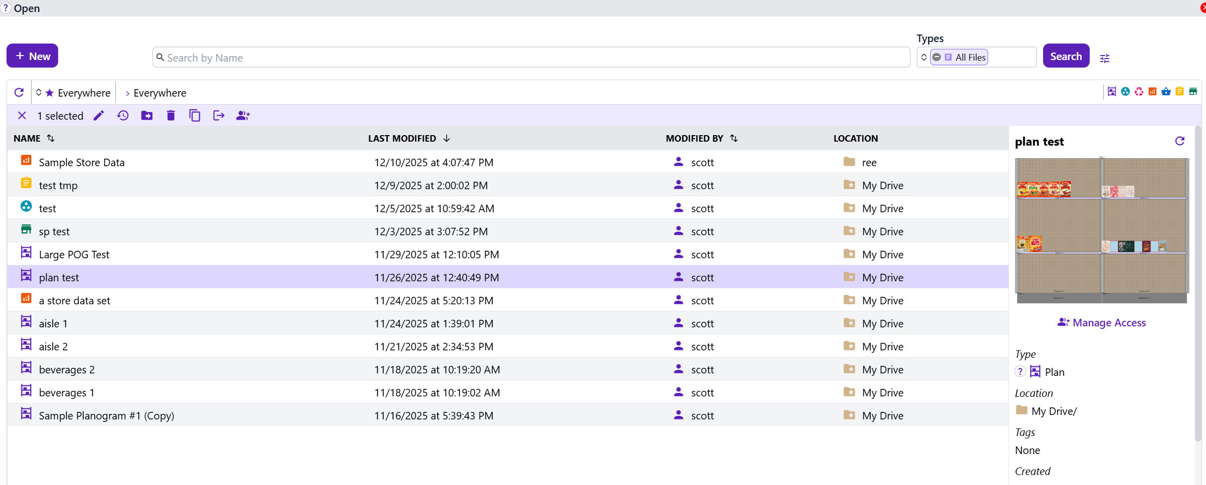 Plan — The primary file type containing fixtures like shelvesRacks and crop_16_9Shelves, along with widgetsProduct Positions.