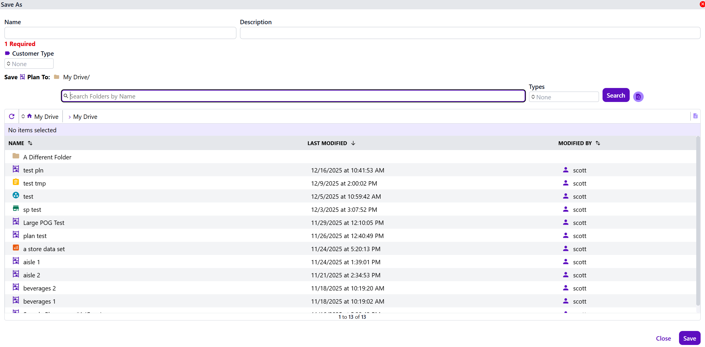 A Plan can be saved via File > save Save (or save_as Save As), or with Ctrl + S. If the Plan has not been saved before, the Save As dialog will appear, allowing you to choose the file name and location. If the Plan has been saved before, it will be saved to the existing file location.