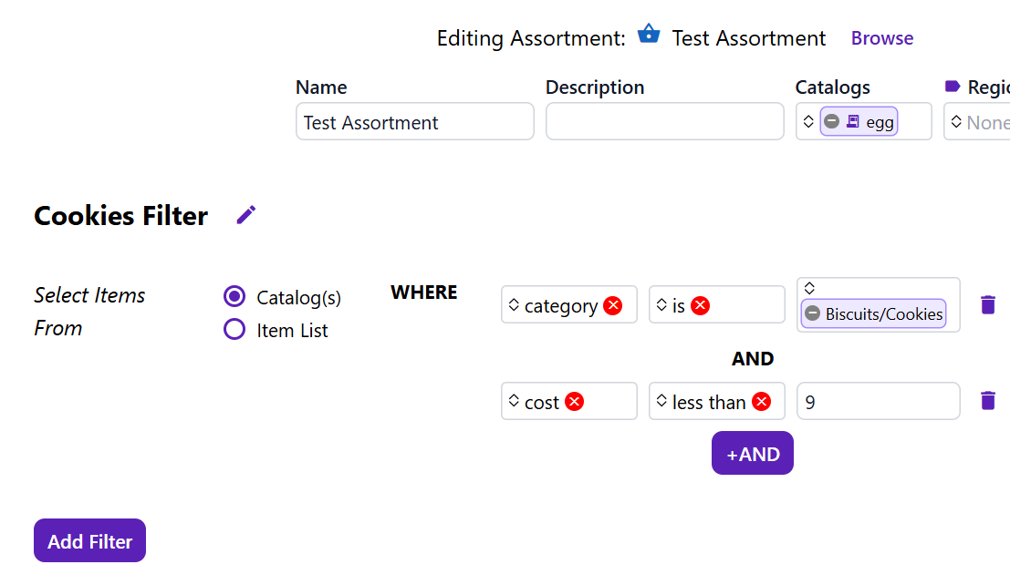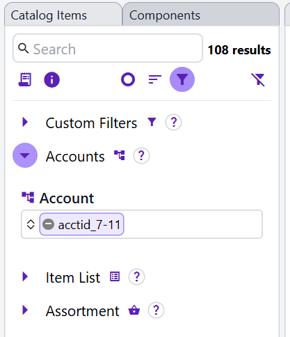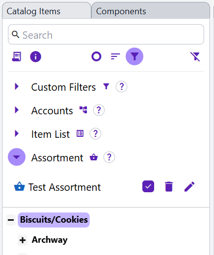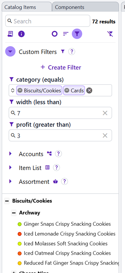 Assortments make use of the list_alt Item List and filter_altCustom Filters features to create a reusable, dynamic set of items.