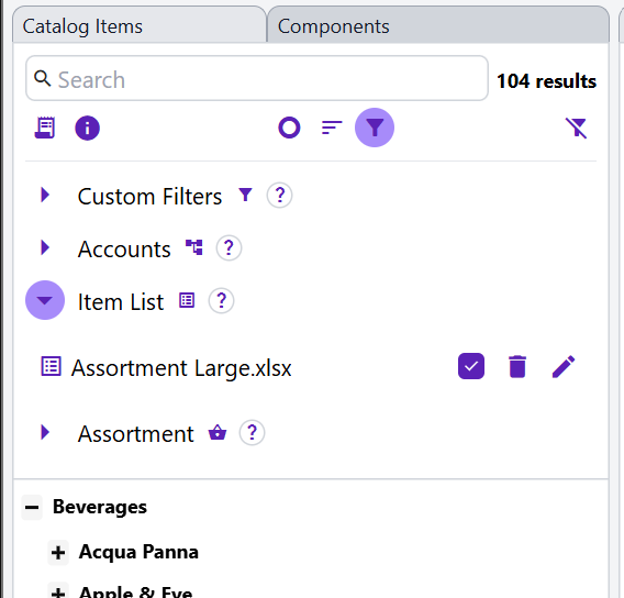 One may filter the catalog to the assortment of items desired for a project. Methods to do so are described below.