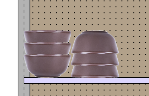 - Multiple items sharing the same peghook, such as differently sized gift bags (Front to Back)
