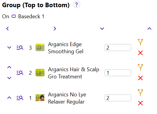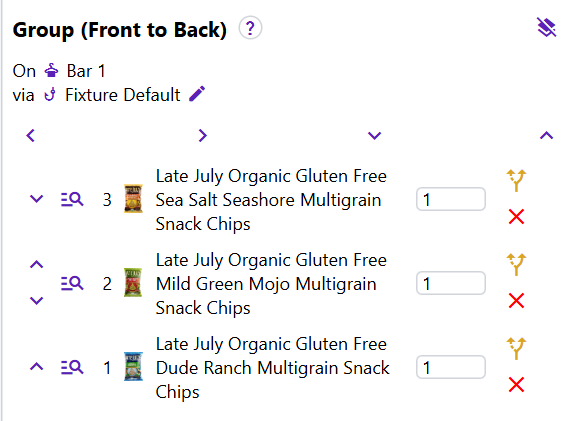 The Inspector can be used to reorder members of a Layered Group, adjust the number of facings for each position, or to remove or detach them from the group.