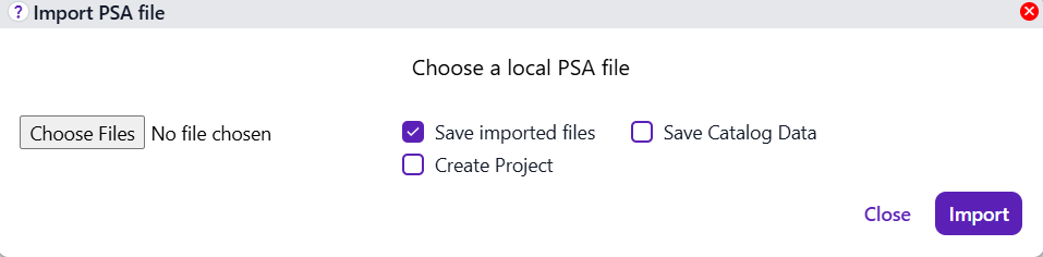 Choose a PSA file via the Choose Files input. If the file is valid, a list of included planograms will appear: